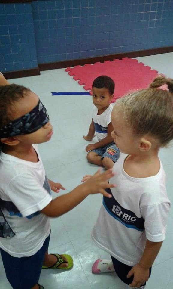 A Cabra-cega alegrou nossa manhã e o objetivo era identificar o colega através do toque, percebendo suas características. Foi gratificante!